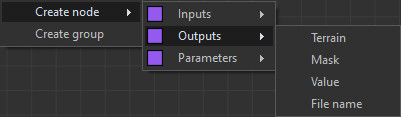 You can create new custom node inputs and outputs, including a terrain, mask, or file name.
