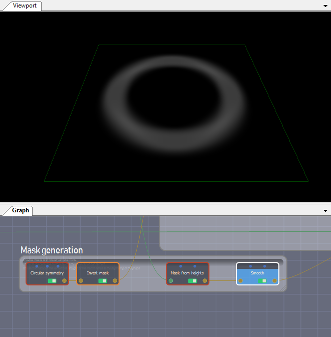 Double-clicking on any node opens that node's parameters window where you can see the settings used in this project, and you can play around with them and see the changes in the Viewport.