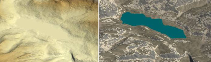 If the imported region has lakes, they are imported as flat areas. This parameter allows them to be detected and colored with the selected color.