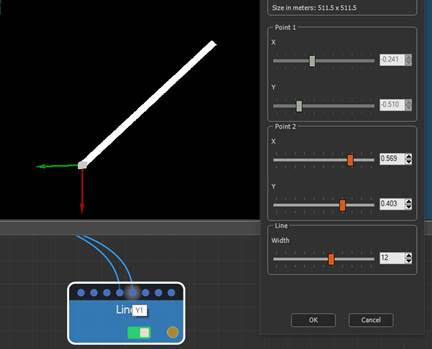 Points 1 and 2 can be moved using the manipulators or their X and Y coordinates can be entered manually in the node properties.