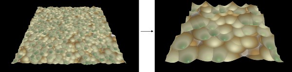 | Scale | Determines the horizontal scale of the noise. More this coefficient is small, the higher the density of "bumps" |