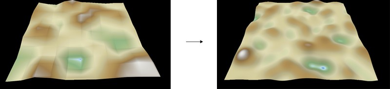 In the example below, the scale is decreased and the terrain has more bumps.