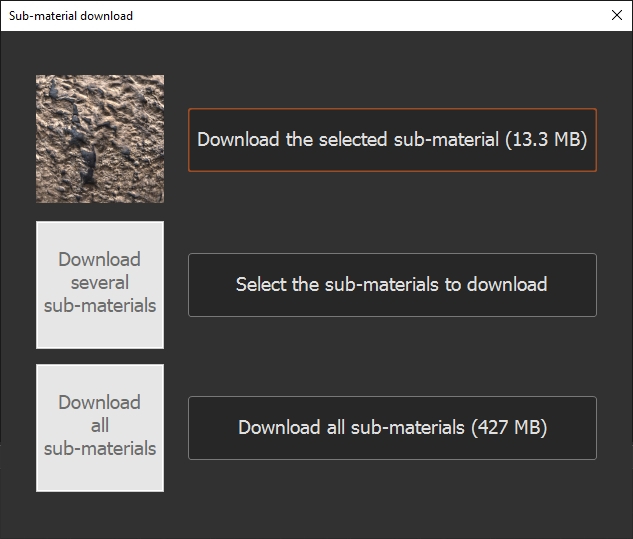 Each layer of a material contains exactly one sub-material. A sub-material contains a set of textures that correspond to a single effect, for example, a rock sub-material or a grass sub-material.